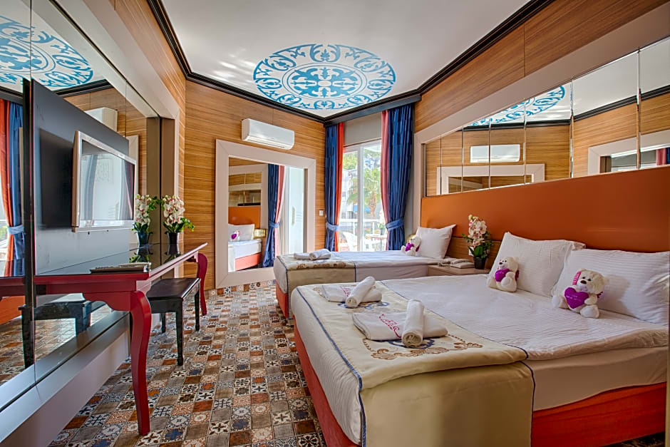 DOUBLE CLUB SEA VIEW is 269 square feet and includes a queen-size bed 150-154 width plus satellite tv and hairdryer.